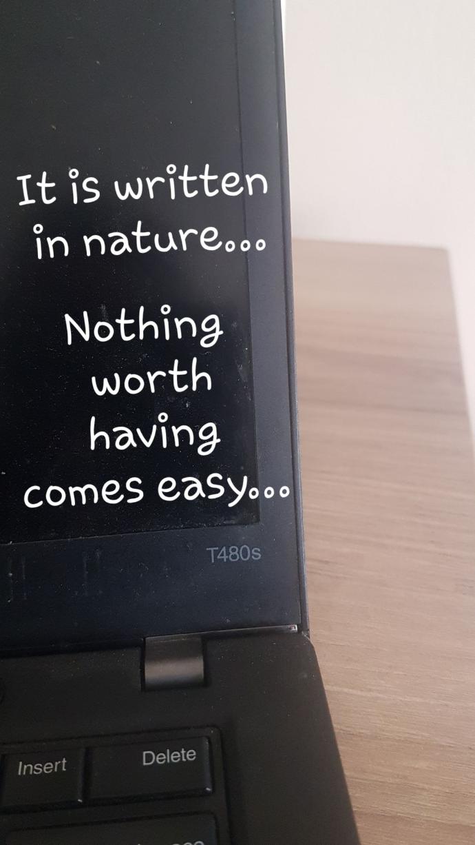 26 July 2024... It is written in nature... Nothing worth having comes easy...